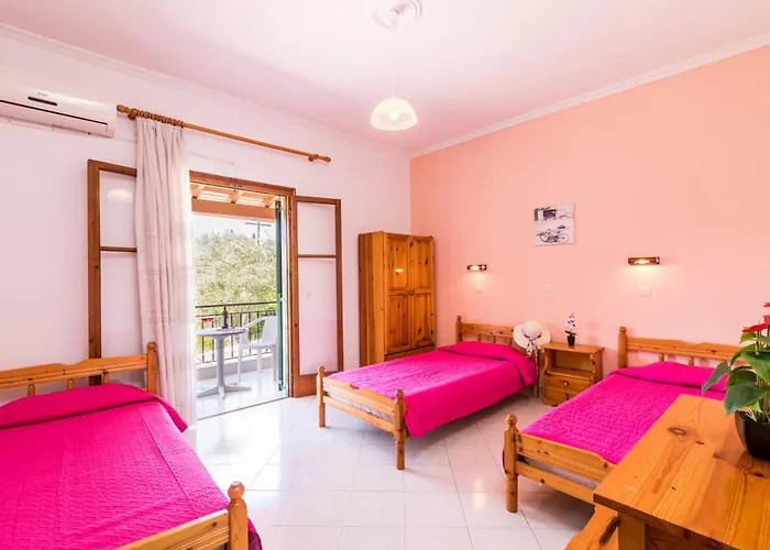 Nikos Apartments 2 appartementen liggen op 10 minuten rjden weg van het Strand van Arkoudilas en hebben een zonneterras, een eettafel. Op 10 minuten met de auto van het appartement vindt u Monastery of the Blessed Virgin Mary.